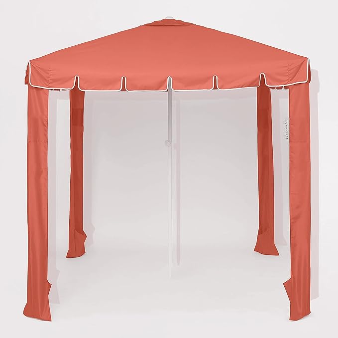 Dimensions: 200 x 200 cm, weight: 3.5 kg, UV coated polyester, includes gazebo and 4 fabric legs with sand feet for extra stability. Storage bag with eyelets for sand drainage. Includes fabric drawstring carry bag for easy transport and storage. Umbrella style mechanism Easy to assemble by one person. Window for ventilation. Can accommodate 2 adults and 2 small children.