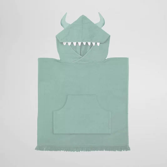 Dry off and after a long day in the sun with the adorable Monster Beach Hooded Towel. Made from 100% combed cotton, the Beach Hooded Towel is lightweight, super soft and features an absorbent terry backing. With a cosy hood, a handy front pocket and 3-D monster horns and teeth, the design is perfect for smaller children. Plus, parents will love the cool, sage green colourway and cotton fringe detail. The Monster Beach Hooded Towel is a summer staple for all little beach lovers!