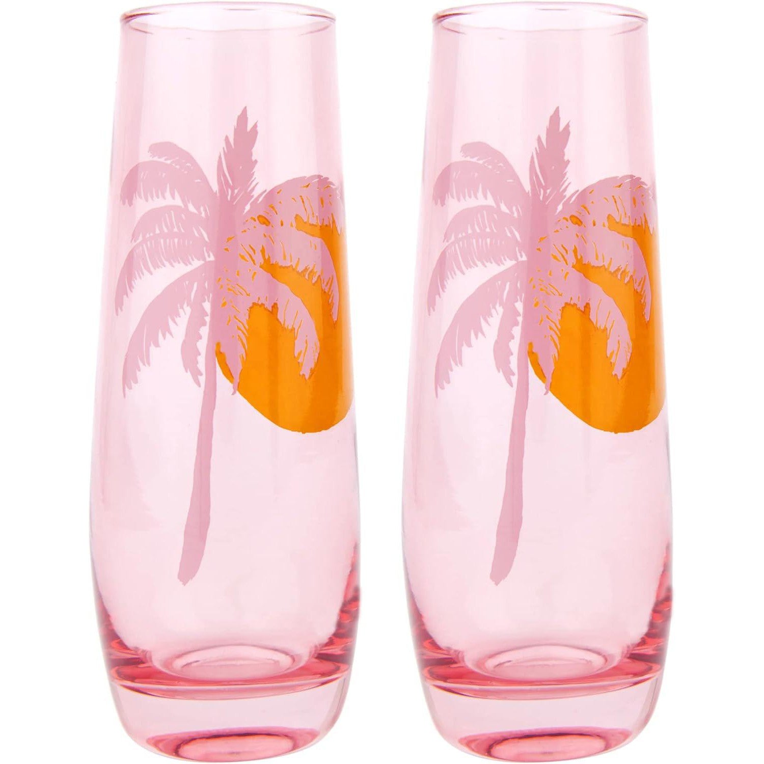 CHEERS STEMLESS GLASS CHAMPAGNE FLUTES DESERT PALMS - POWDER PINK SET OF 2