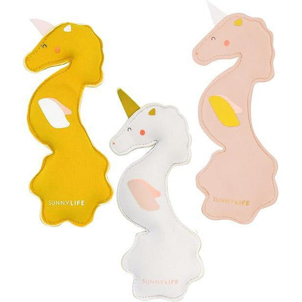 Dive deep into the best Summer yet with Sunnylife's Dive Buddies. Set includes three Seahorse Unicorn which encourage children to build confidence in the water and develop their diving skills, as well inspiring imaginative water-play with their friends. Made from durable neoprene material, these cool and colourful Dive Buddies are quick drying after a long day of swim-time excitement, ready to swim into your bag when it's time to go home.