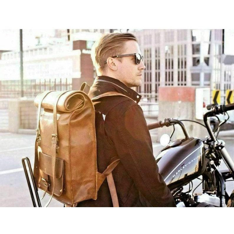 Absolute handmade Retro look Leather Backpack with durable stitching and robust canvas lining