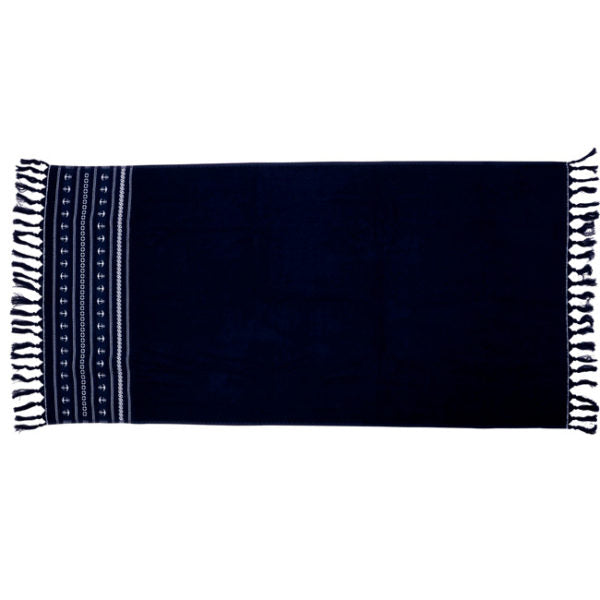 Large fringed beach towel with nautical design. Made of high quality argyle terry cloth. Perfect as a boat deck towel.