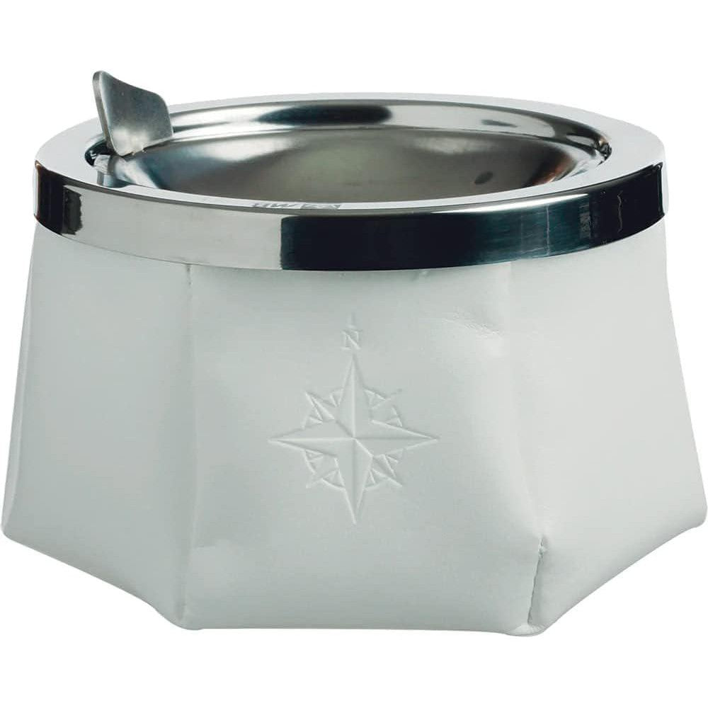 El cenicero con tapa blancoWINDPROOF es elegante y práctico, en polipiel de color marrón. La cazuela interior y la tapa son de acero inoxidable. El exterior del cenicero con tapa blanco WINDPROOF es de tejido en polipiel con serigrafía decorativa. En la base dispone de un peso que hace que el cenicero sea estable y antideslizante evitando que resbale de la mesa, sin el riesgo que caigan colillas al suelo. Además su tapa anti-viento en acero inoxidable hace que la ceniza no salga volando y ensucie nuestra embarcación. Un artículo náutico imprescindible en cualquier situación. Disponibles en polipiel en 5 colores y en ante en 2 colores.