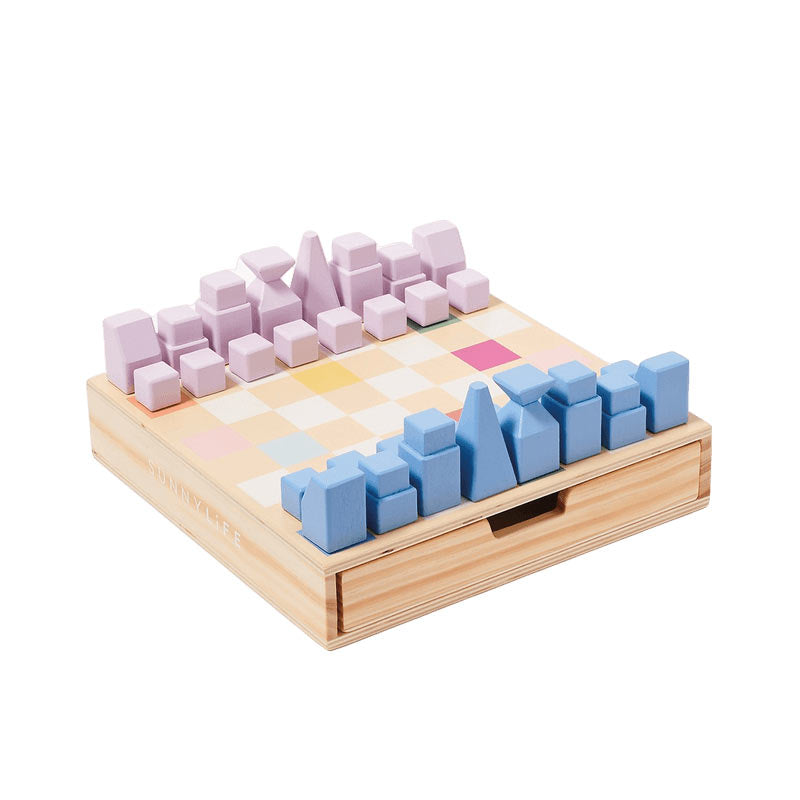 Get back to basics with our stunning collection of classic games made from natural wood. With custom-designed, geometric statement pieces and a colourfully printed wooden game board, this playful game set is both earthy and vibrant. You will never be bored with this multi-purpose playing board in your games cupboard. Equipped with a full set of wooden pieces for a game of chess or checkers, feel free to play the day away in style.