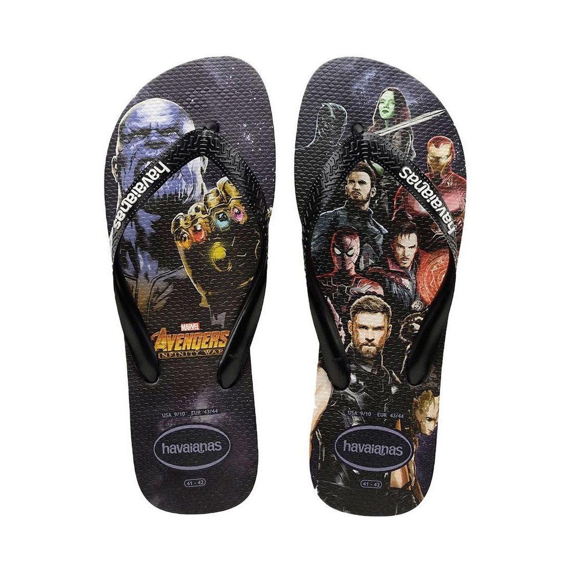 Their favourite Marvel superheroes join forces for this edition of the Kids Top Marvel flip flop. Featuring the Avengers facing off against Thanos and his infinity stones. A white Havaianas logo on black straps finishes this Avengers: Infinity War-inspired look.