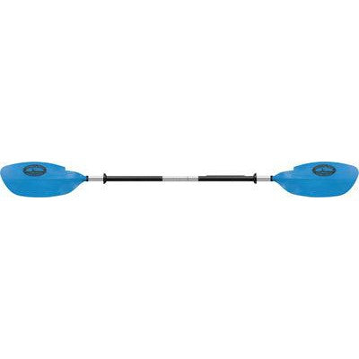 Asymmetrical Blade Kayak Paddle, 7' Asymmetrical and Dihedral (smooth touring), the fiberglass reinforced blades feature a built-in dock hook and are designed for a more leisurely shallow angle stroke. Lightweight, black anodized aluminum shaft. Cold weather grip with three position push-button feather settings. Convenient two piece design allows for quick and easy storage. 1.18" shaft diameter with drip rings. 1 Year Warranty.