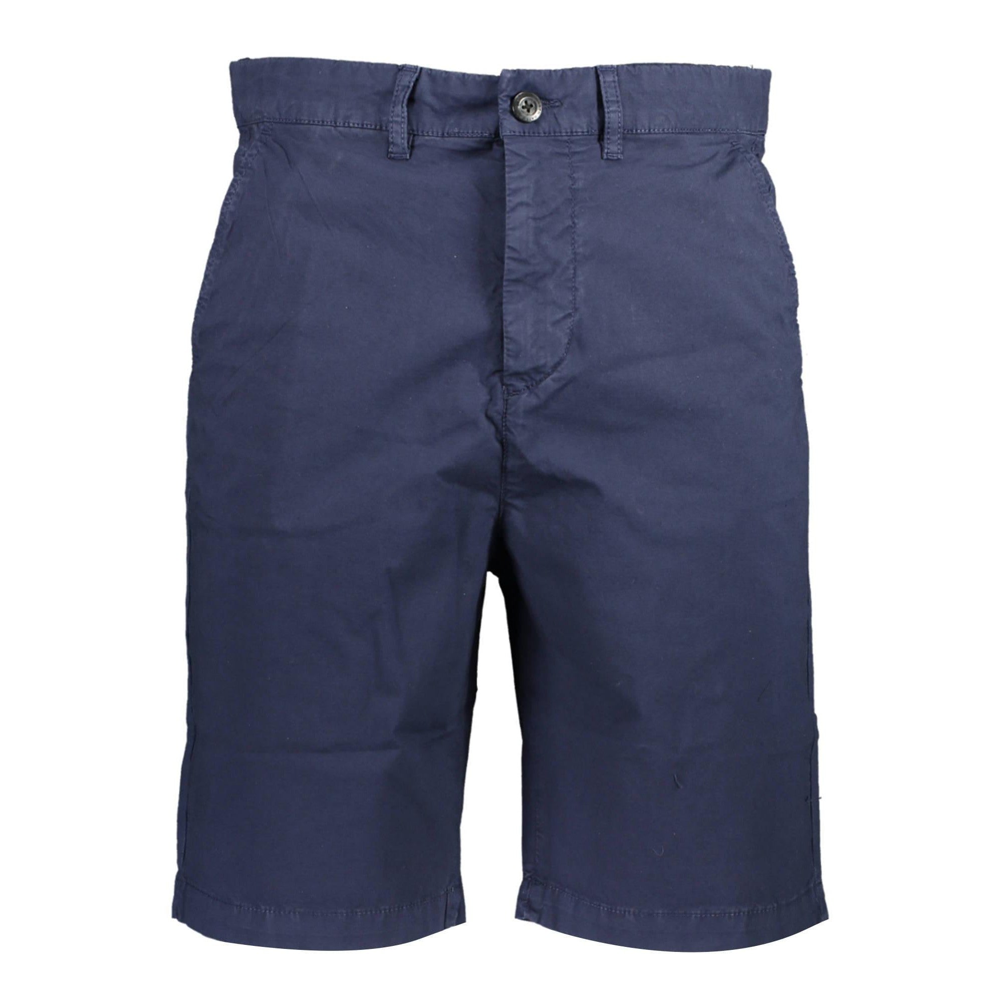 North Sails men's blue bermuda trousers, regular cut with four pockets. Equipped with a zip and button closure, it features the brand logo and is made of organic cotton.