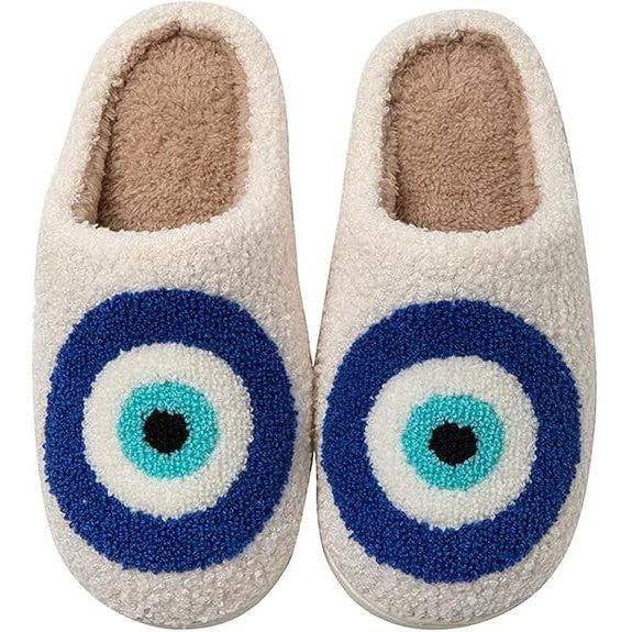 Embrace the cozy warmth of our unisex Evil Eye Slippers, perfect for indoor and outdoor wear during the chilly winter season.
