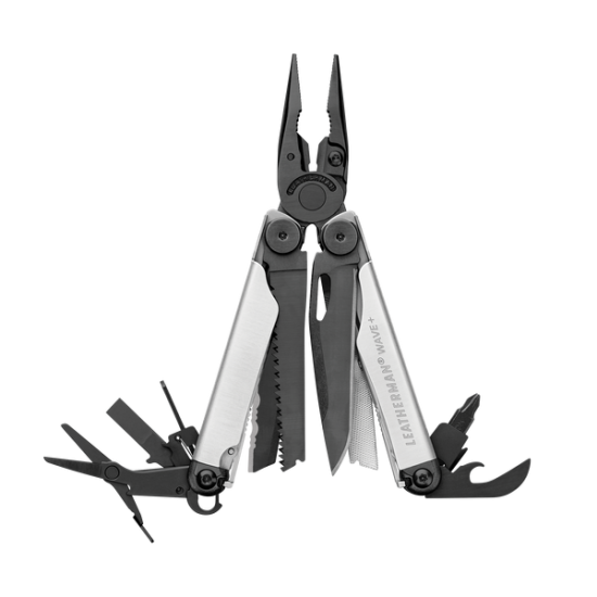 The Leatherman Wave® + multi-tool is hands down our most popular model, made famous by its outside-accessible blades that can be deployed with just one hand. When we redesigned it in 2004, we gave the new Wave larger knives, stronger pliers, longer wire cutters, and all-locking blades. Perfect for any job, adventure, or everyday task, the Wave multi-tool is an international best-seller. Available now in a limited-edition, black and stainless steel finish.