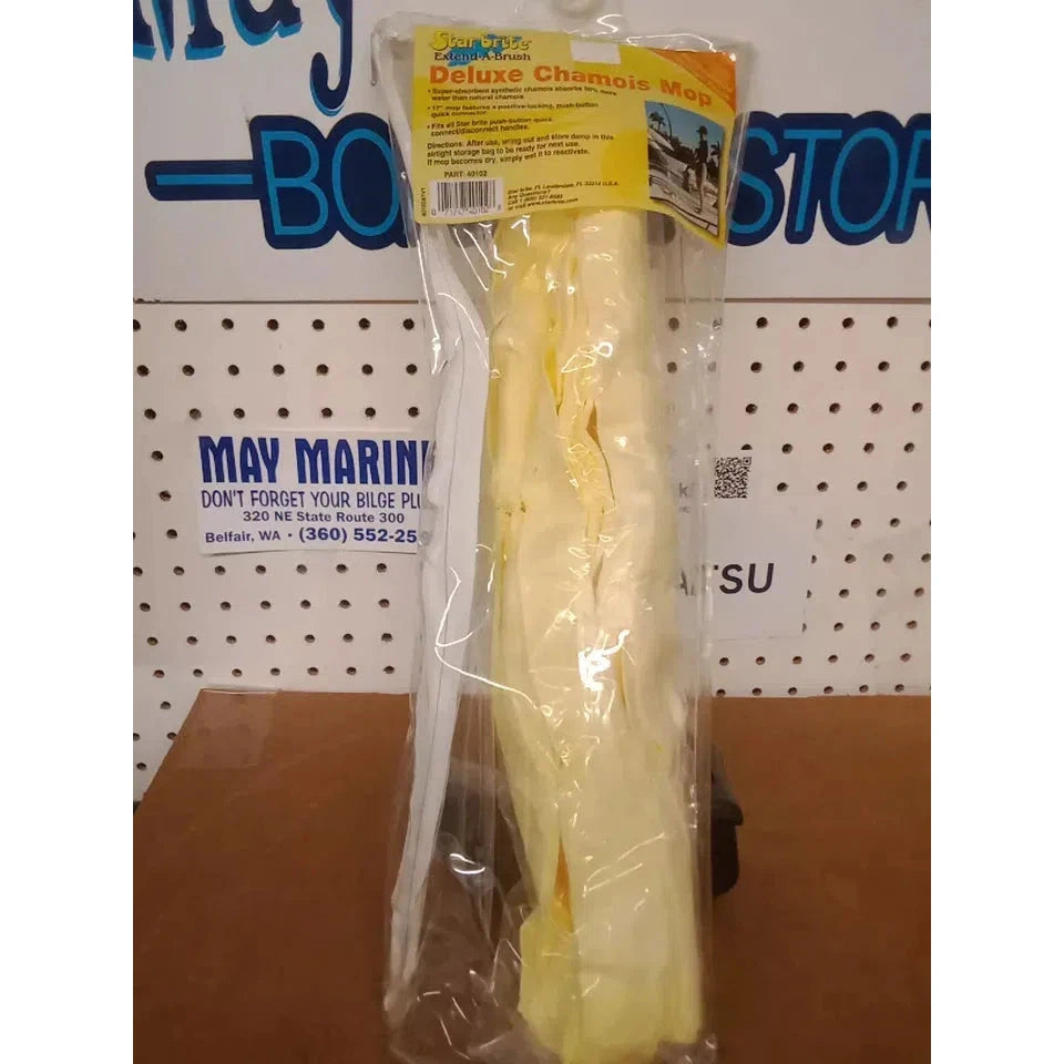 Introducing the Star Brite "Deluxe Chamois Mop" - a high-quality accessory suitable for fiberglass boats. This product from the United States comes in a vibrant yellow color and has a manufacturer part number of 40102, 74-40102. It is a great addition to your boat's paint and maintenance kit.