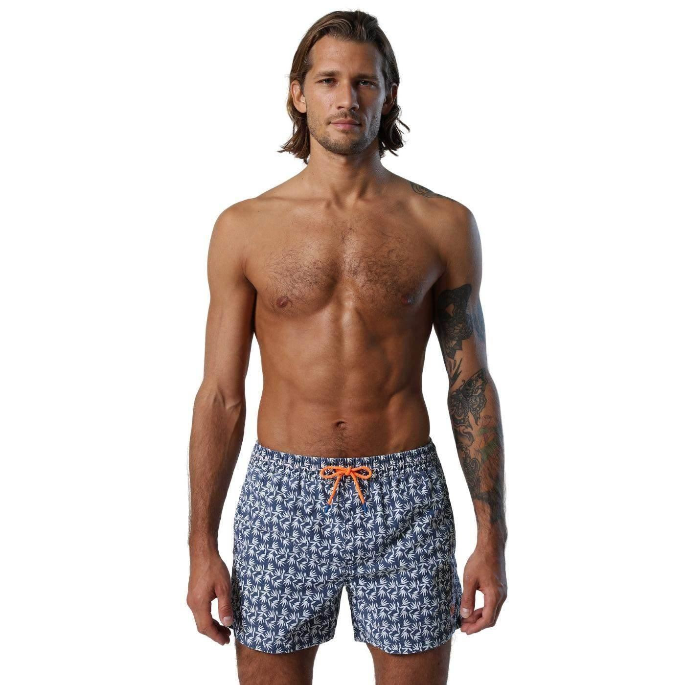 Men's swimming shorts in blue. This North Sails model has a fitted cut, adjustable waist with drawstring and elastic. Two side pockets and one back pocket. Metallic details in blue and white print. Logo detail at the bottom. North Sails at delcanomoda.es