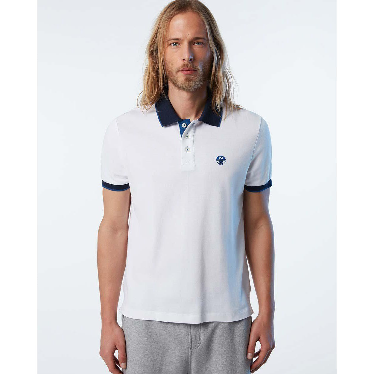 Men's polo shirt made of combed organic cotton piqué. Three-button placket, ribbed trims and embroidered logo on the chest. Oxford fabric crescent yoke.