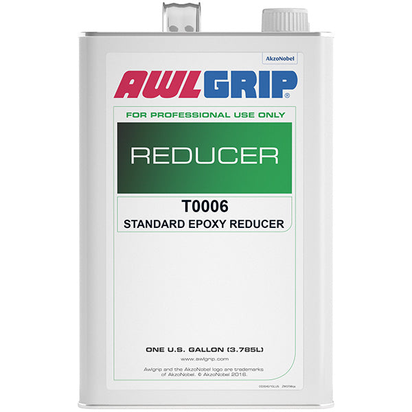 AWLGRIP STANDARD EPOXY REDUCER T0006 -Standard epoxy reducer for spray application of 545 Epoxy Primer, Awlquik, Sprayable Fairing Compound, Max Cor CF, High Build and Ultra Build Epoxy Primers. Also recommended for Hullgard Extra Epoxy Primer. Product is sold by the quart and gallon.