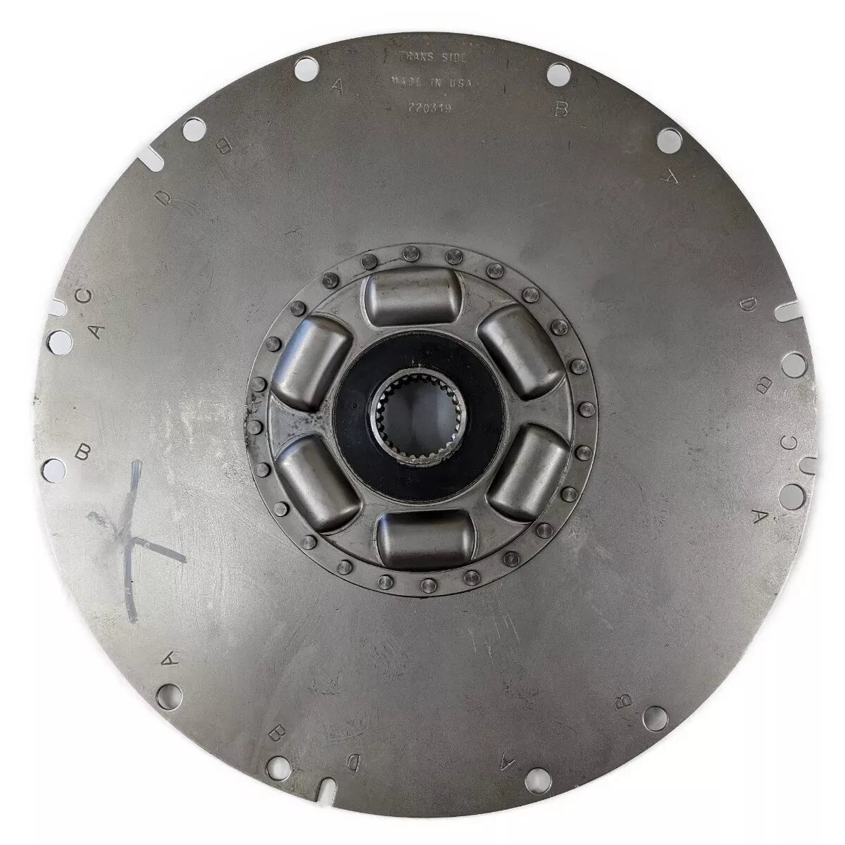 - Original equipment Crusader flywheel mounted damper plate used to drive the transmission