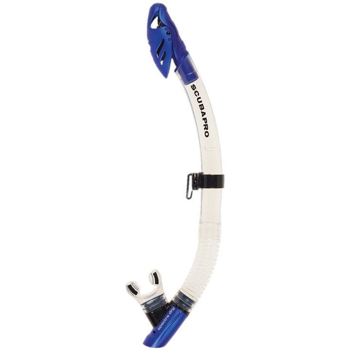 Designed to be the perfect companion to SCUBAPRO's Spectra masks, the restyled SPECTRA DRY is nothing if not the ideal snorkel. Its large-bore upper tube allows plenty of airflow, and its dry top design actually seals the tube when the snorkel is submerged so no clearing is needed upon resurfacing. An efficient purge valve expels any water that might make its way into the airway, preventing that annoying gurgling sensation you get when breathing off a "wet" snorkel. The lower corrugated tube is flexible so when you switch to your regulator the snorkel mouthpiece hangs out of the way.