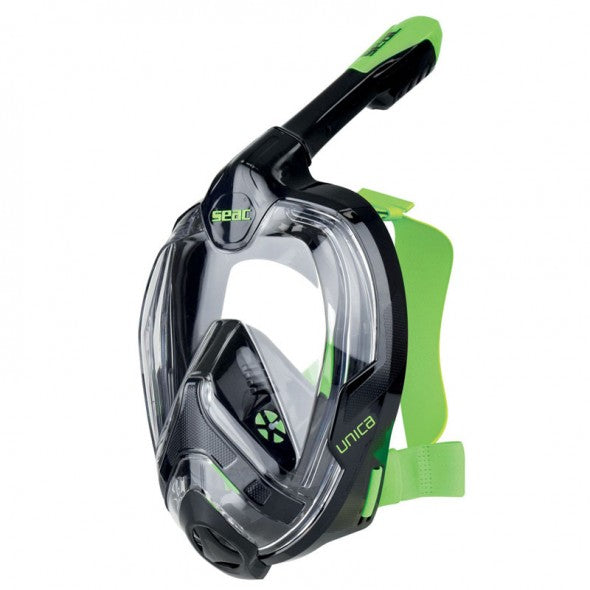 Unica is the perfect full-face mask for snorkeling. Designed and manufactured by Seac. This dive mask will give you the chance to explore the underwater world while naturally breathing through your nose and mouth.