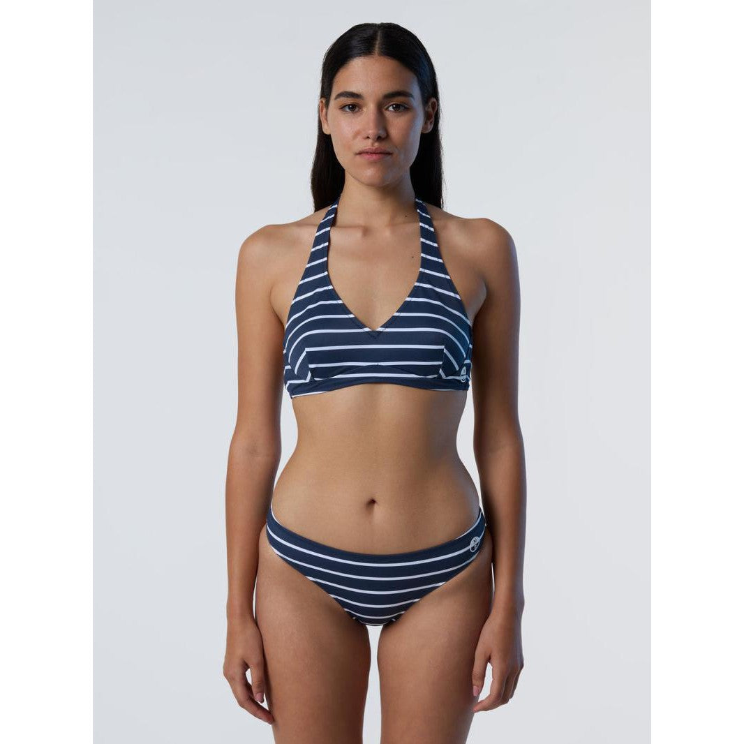 Style, support and planet-conscious spirit. Taking it back to our marine roots with a classic striped design, this halterneck bikini top is made from eco LYCRA® produced from recycled materials to help reduce the amount of waste sent to landfill. Styled with an elegant V-neckline, it features adjustable ties for a flawless fit and comes with removable padding. A rubberized North Sails logo adds a signature touch.